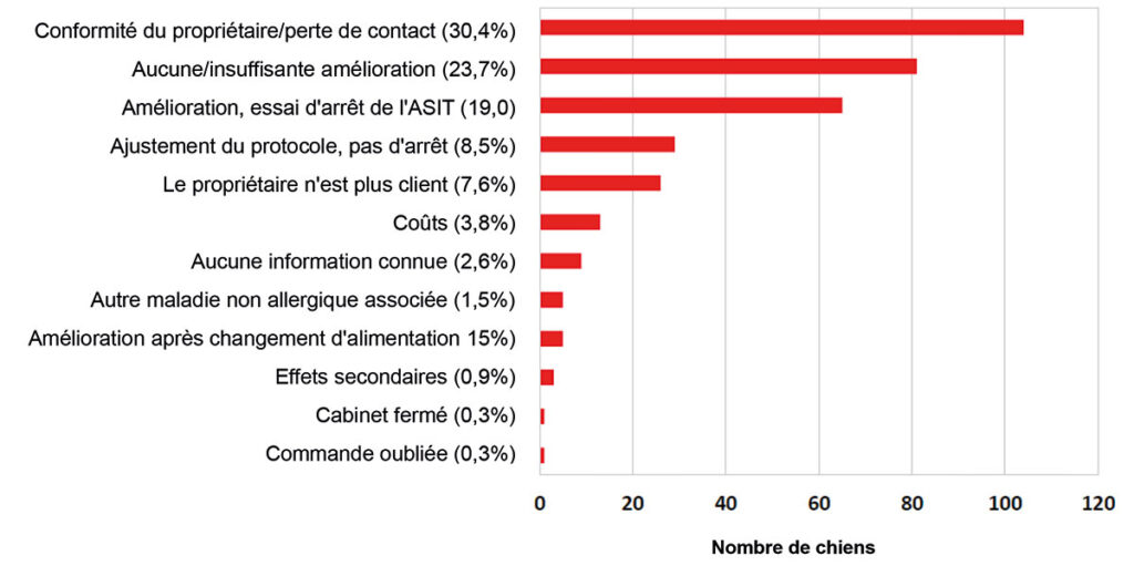 - Fig. 1 : Les raisons de l’arrêt d’une immunothérapie spécifique aux allergènes (ASIT) chez les chiens après le kit de démarrage